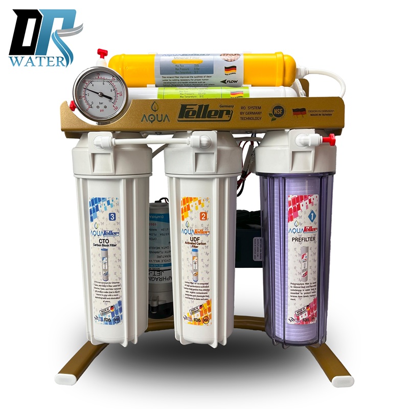 دستگاه تصفیه آب آکوا فلر AQUA FELER مدل 6 مرحله شاسی فلزی طلایی